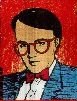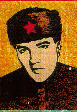 The Santa Elvis is shown next to a fat, but not so jolly, Old Elvis in his white Aztec jumpsuit. |